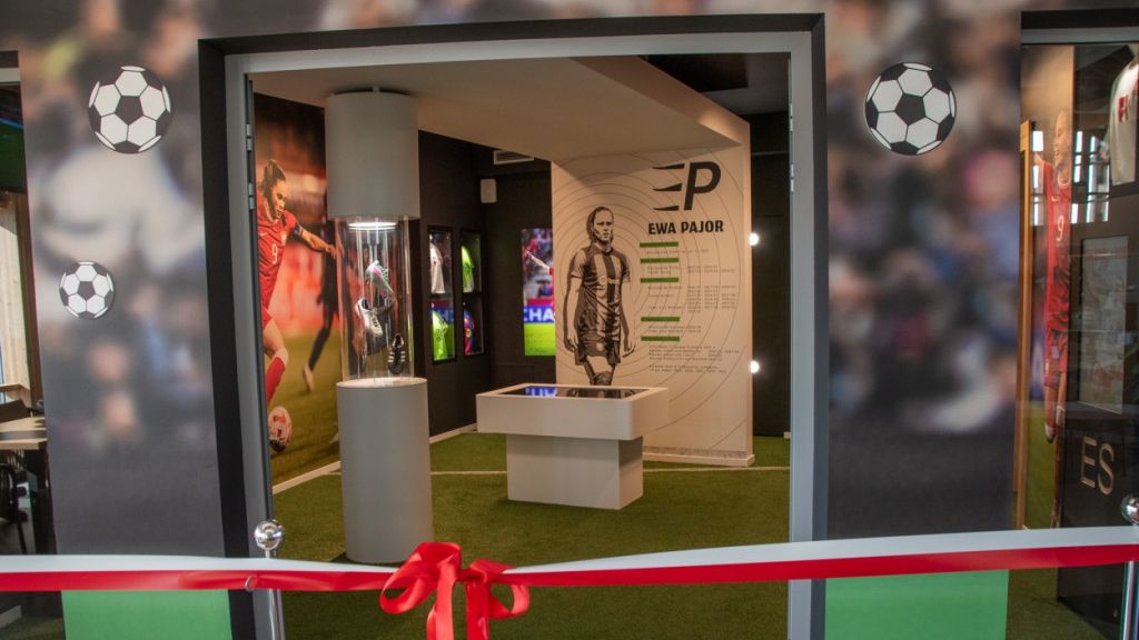 wejście do interaktywnego muzeum piłkarskiego poświęconego Ewie Pajor